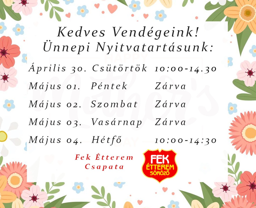 Hétfőtől csütörtökig 10:00 -14:30-ig